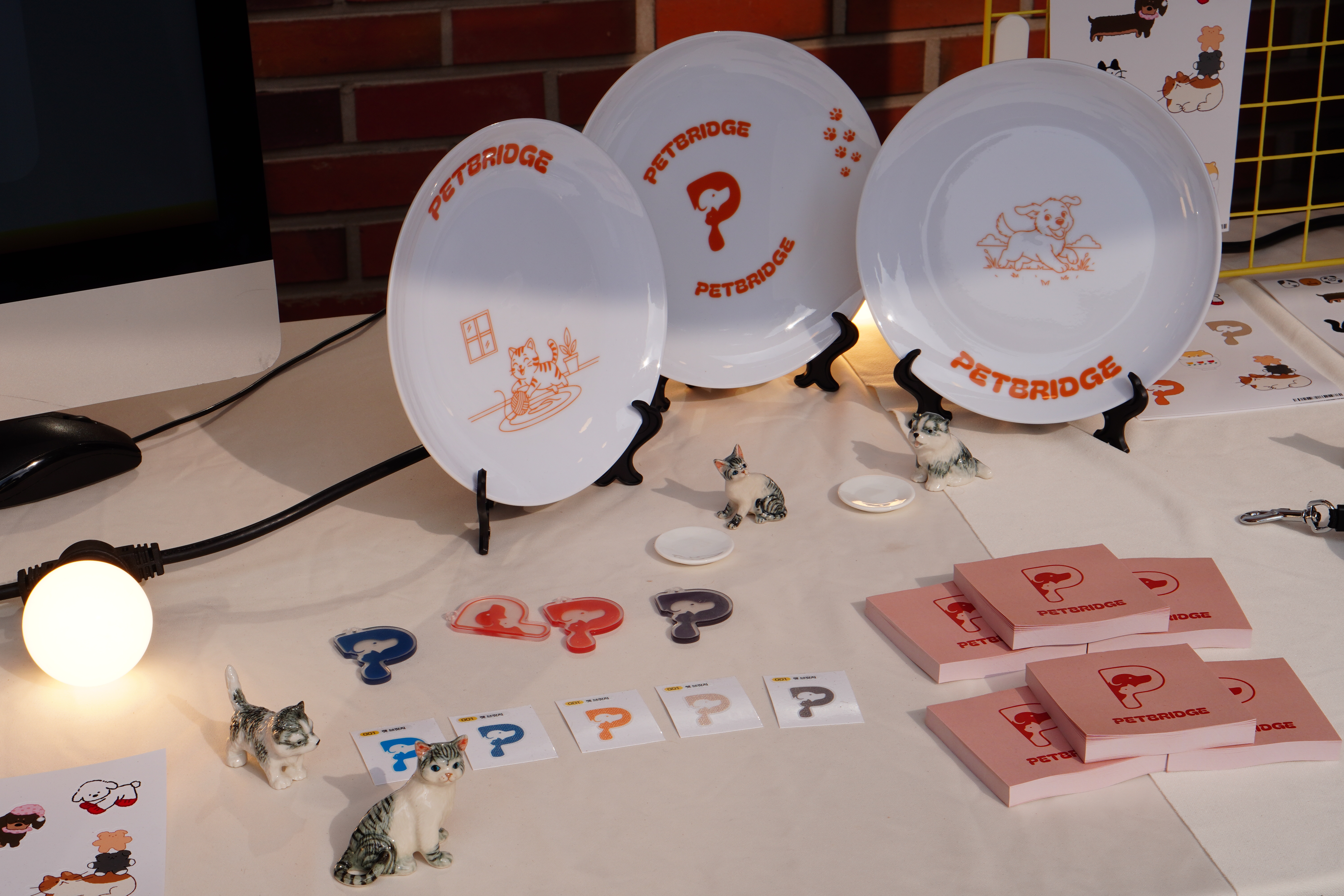 이번에는 강아지와 관련된 부스인데요, 스티커들과 포스트잇, 그릇, 머그컵 등에 로고가 있으니까 진짜 존재하는 브랜드로 느껴졌습니다.