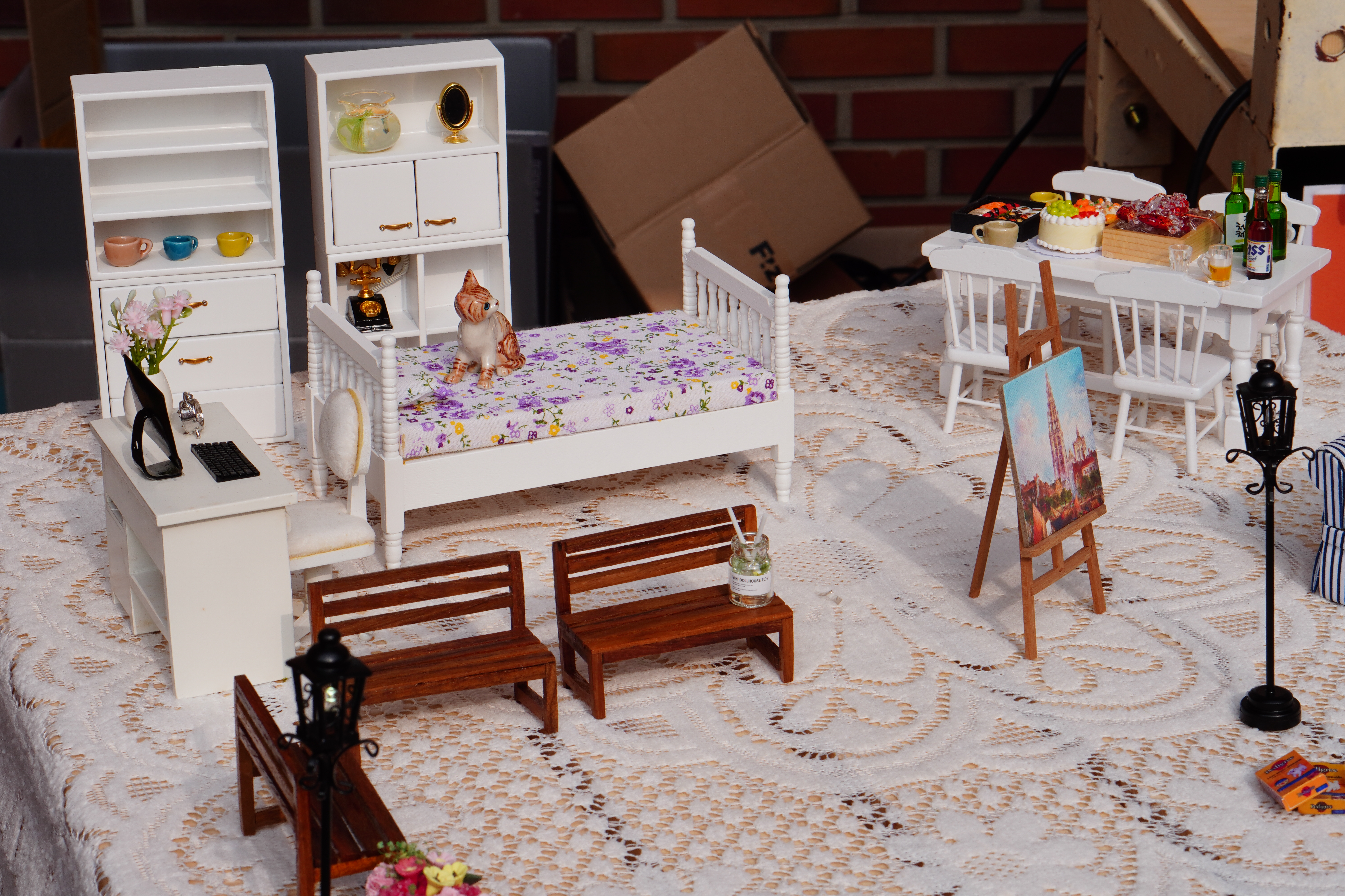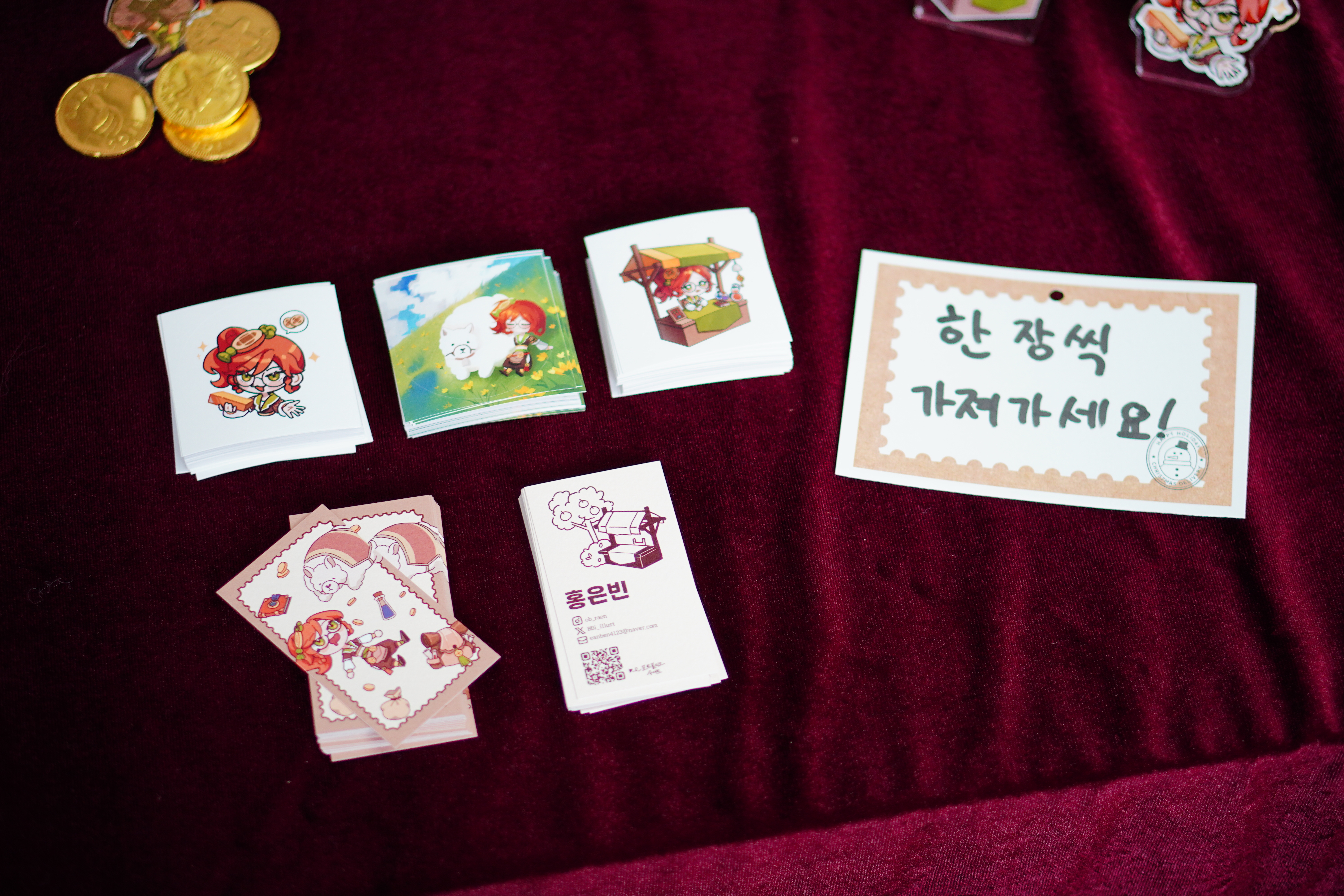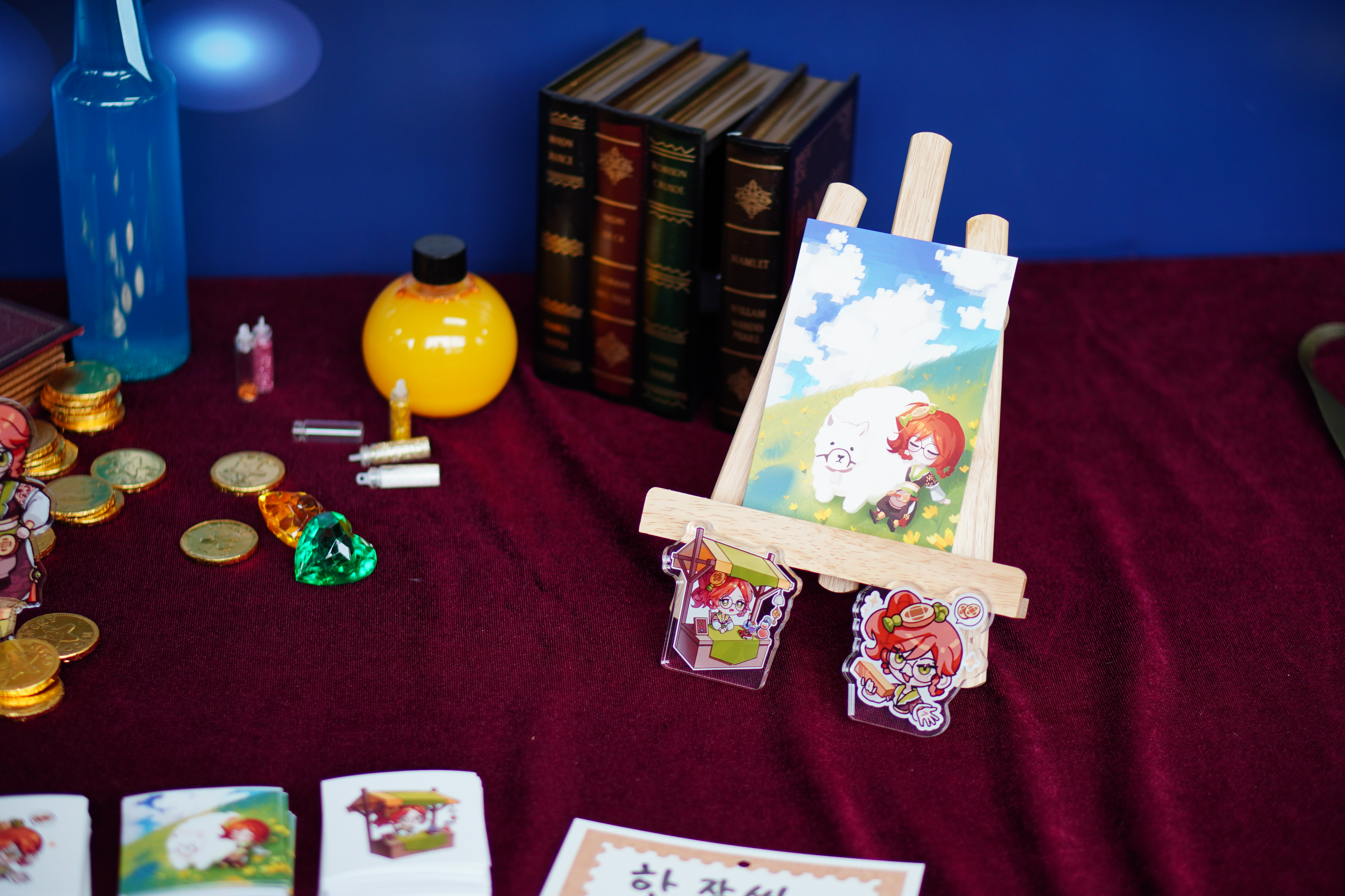귀여운 인형과 작은 소품들, 아기자기한 빵들과 키링, 그립톡과 포장 박스들이 인상적이었습니다.