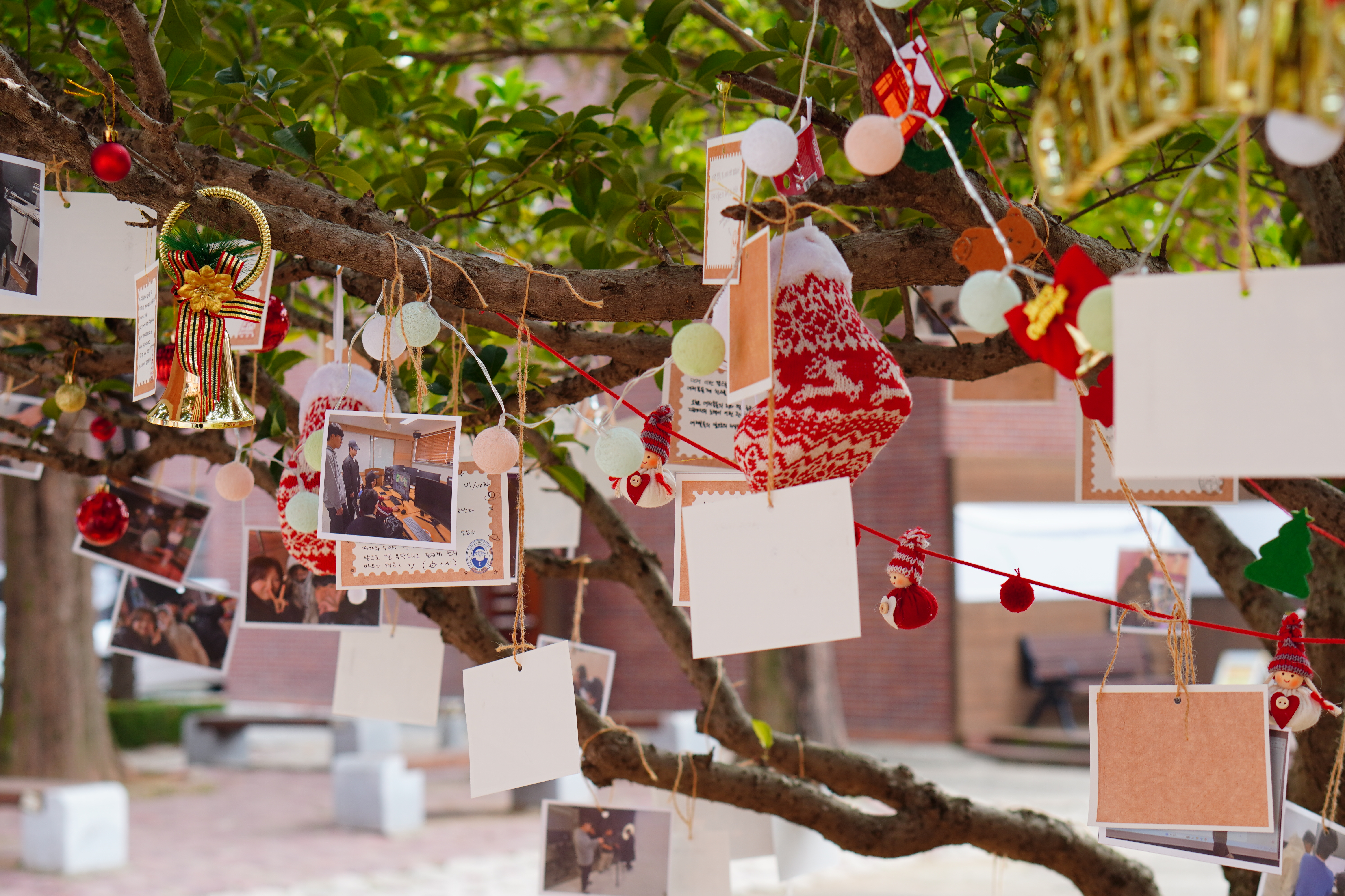 부스를 다 돌고 나오니 나무에 편지들과 사진이 걸려 있었습니다.